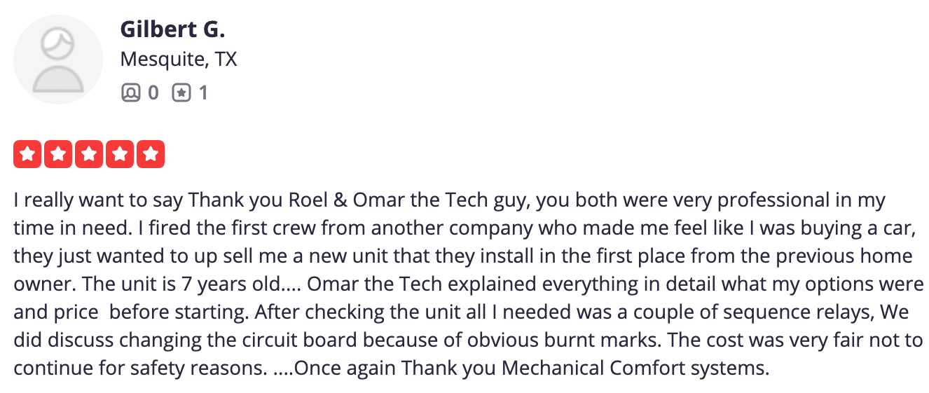 Certified through the state of Texas, Mechanical Comfort Systems Inc. covers installations, upgrades, repairs, and seasonal maintenance across Duncanville, Desoto, Cedar Hill, Irving and Lancaster, TX. We are upfront about pricing, options, and the ins and outs of our services, making sure you understand exactly what we’re doing for you and why.